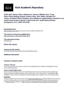 Smith, Nick, Charles, Alison, Abrahamson, Vanessa, Mikelyte, Rasa, Trapp, Olivia, Zhang, Wenjing, Hashem, Ferhana, Potts, John, Walton, Georgina, Towers, Ann-Marie and others. (2026) Facilitators and challenges to implementing a researcher-in-residence model to build research capacity in adult social care. Health Research Policy and Systems, 24 (1). Article Number 26. ISSN 1478-4505. (doi:10.1186/s12961-026-01447-8) (KAR id:113548)