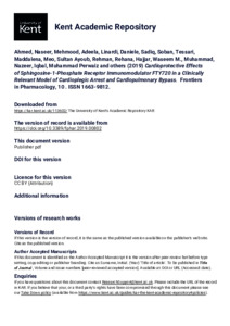 Ahmed, Naseer, Mehmood, Adeela, Linardi, Daniele, Sadiq, Soban, Tessari, Maddalena, Meo, Sultan Ayoub, Rehman, Rehana, Hajjar, Waseem M., Muhammad, Nazeer, Iqbal, Muhammad Perwaiz, and others. (2019) Cardioprotective Effects of Sphingosine-1-Phosphate Receptor Immunomodulator FTY720 in a Clinically Relevant Model of Cardioplegic Arrest and Cardiopulmonary Bypass. Frontiers in Pharmacology, 10 . Article Number 802. ISSN 1663-9812. (doi:10.3389/fphar.2019.00802) (KAR id:113602)
