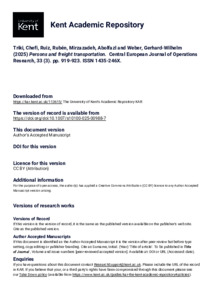 Triki, Chefi, Ruiz, Rubén, Mirzazadeh, Abolfazl, Weber, Gerhard-Wilhelm (2025) Persons and freight transportation. Central European Journal of Operations Research, 33 (3). pp. 919-923. ISSN 1435-246X. (doi:10.1007/s10100-025-00988-7) (KAR id:113615)