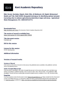 Bilal, Hazrat, Govindan, Rajesh, Zekri, Slim, Al-Maktoumi, Ali, Rajabi, Mohammad Mahdi, Triki, Chefi (2025) Geospatial techniques for identifying optimal rainwater harvesting sites to enhance agricultural productivity in hyper arid areas. Agricultural Water Management, 318 . Article Number 109696. ISSN 0378-3774. (doi:10.1016/j.agwat.2025.109696) (KAR id:113616)