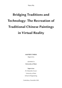 Ma, Nana (2026) Bridging Traditions and Technology: The Recreation of Traditional Chinese Paintings in Virtual Reality. Master of Science by Research (MScRes) thesis, University of Kent,. (doi:10.22024/UniKent/01.02.113657) (KAR id:113657)