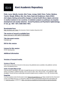Potts, Laura, Bakolis, Ioannis, Deb, Tanya, Lempp, Heidi, Vince, Tushar, Benbow, Yasmin, Waugh, William, Kim, San, Raza, Syed, Henderson, Claire and others. (2022) Anti-stigma training and positive changes in mental health illness stigma outcomes in medical students in ten countries: A mediation analysis on pathways via empathy development and anxiety reduction. Social Psychiatry and Psychiatric Epidemiology, 57 (9). pp. 1861-1873. ISSN 0933-7954. E-ISSN 1433-9285. (doi:10.1007/s00127-022-02284-0) (KAR id:113694)