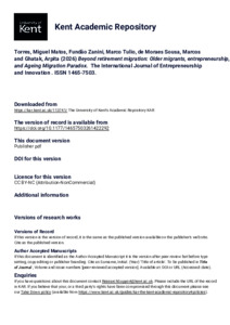 Torres, Miguel Matos, Fundão Zanini, Marco Tulio, de Moraes Sousa, Marcos, Ghatak, Arpita (2026) Beyond retirement migration: Older migrants, entrepreneurship, and Ageing Migration Paradox. The International Journal of Entrepreneurship and Innovation, . ISSN 1465-7503. E-ISSN 2043-6882. (doi:10.1177/14657503261422292) (KAR id:113741)