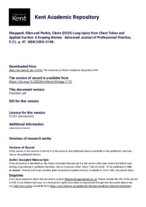 Sheppard, Ellen, Parkin, Claire (2025) Lung injury from Chest Tubes and Applied Suction: A Scoping Review. Advanced Journal of Professional Practice, 5 (1). p. 47. ISSN 2059-3198. (doi:10.22024/UniKent/03/ajpp.1172) (KAR id:113794)