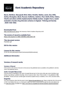 Bacon, Matthew, Glasspoole-Bird, Helen, Hendrie, Nadine, Lewer, Dan, Mills, Ashley, Monaghan, Mark, Pascual, Guillermo, Quinton, Paul, Smith, Rivka, Sutton, Charlie, and others. (2026) Implementation fidelity matters: insights from a realist evaluation of police drug diversion schemes in England. Policing and Society, . ISSN 1043-9463. (doi:10.1080/10439463.2026.2651196) (KAR id:113818)