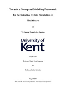 Horsti dos Santos, Vivianne (2026) Towards a Conceptual Modelling Framework for Participative Hybrid Simulation in Healthcare. Doctor of Philosophy (PhD) thesis, University of Kent,. (KAR id:113845)