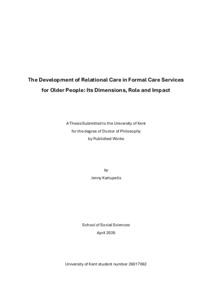 Kartupelis, Jenny (2026) The Development of Relational Care in Formal Care Services for Older People: Its Dimensions, Role and Impact. PhD based on Published Works thesis, University of Kent,. (doi:10.22024/UniKent/01.02.113885) (KAR id:113885)