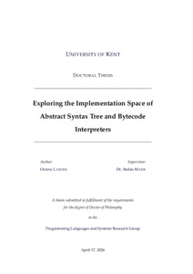 Larose, Octave (2026) Exploring the Implementation Space of Abstract Syntax Tree and Bytecode Interpreters. Doctor of Philosophy (PhD) thesis, University of Kent,. (doi:10.22024/UniKent/01.02.113912) (KAR id:113912)