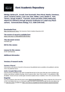Eldridge, Bethany M., Javvadi, Sree Gowrinadh, Perez-Moral, Natalia, Sweetman, Jessie, de Barros Dantas, Luíza Lane, Saha, Shikha, Lynch, Deirdre A., Hunt, Thomas, Clough, Sophie E., Toussaint, Jemal, and others. (2026) Addressing Vitamin B12 deficiency through aeroponic fortification of a salad crop (Pisum sativum). Communications Biology, 9 (1). Article Number 544. ISSN 2399-3642. (doi:10.1038/s42003-026-09764-y) (KAR id:113961)