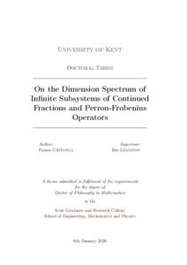 Chitanga, Painos (2026) On the Dimension Spectrum of Infinite Subsystems of Continued Fractions and Perron-Frobenius Operators. Doctor of Philosophy (PhD) thesis, University of Kent,. (doi:10.22024/UniKent/01.02.114012) (KAR id:114012)