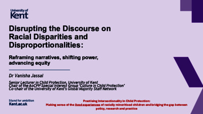 Jassal, Vanisha (2025) Disrupting the Discourse on Racial Disparities and Disproportionalities: Reframing narratives, shifting power, advancing equity. [Conference item] (KAR id:114039)