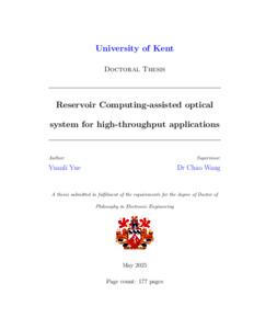 Yue, Yuanli (2026) Reservoir Computing-assisted optical system for high-throughput applications. Doctor of Philosophy (PhD) thesis, University of Kent,. (doi:10.22024/UniKent/01.02.114053) (KAR id:114053)