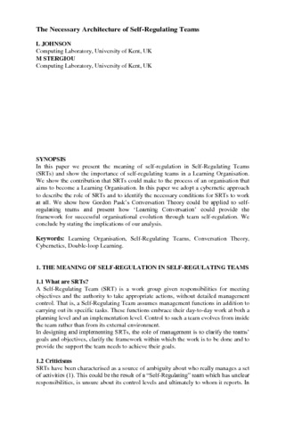 In this paper we present the meaning of self-regulation in Self- Regulating Teams (SRTs) and show the importance of self- regulating teams in a learning organisation. Self-regulating (also known as self-managing) teams guide and perform their own tasks without a visible leader. In the present dynamic business environment, SRTs promise to deliver higher motivation and empowerment to the individuals that participate in them as well as elevated performance and efficiency to the organisations that implement them. However, as management support and change in business culture are prerequisites for the success of SRTs, their implementation is not an easy task. Often, unsuccessful SRTs have been (in our opinion, wrongly) criticized as a source of ambiguity for organisations and as yet another management technique that does not deliver its promises. We start exploring the validity of such a criticism by discussing the shift from a training paradigm to a self- development paradigm in order to draw the picture of a learning organisation as an entity that facilitates learning of all its members and continuously transforms itself as a whole. We continue by showing the contribution that SRTs could make to the process of an organisation that aims to become a learning organisation. In this paper we adopt a cybernetic approach to describe the role of SRTs and to identify the necessary conditions for SRTs to work at all. We present the necessary architecture of SRTs; the architecture that is needed to deliver their promised advantages. We show how Gordon Pasks Conversation Theory could be applied to self-regulating teams and present how learning conversation could provide the framework for successful organisational evolution through team development and team self- regulation. We show how the establishment of such an architecture can lead to a better understanding of self-regulating teams and thus to their successful evolution and development within an organisation. We conclude by stating the implications of our analysis.