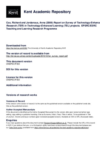 Cox, Richard, Jordanous, Anna (2009) Report on Survey of Technology-Enhanced Research (TER) in Technology-Enhanced Learning (TEL) projects. EPSRC/ESRC Teaching and Learning Research Programme (KAR id:42383)