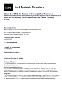 Mbidzo, Meed (2016) The Dynamics of Governing Natural Resources in Namibia's Conservancies and Community Forests: Implications for Empowerment, Equity and Sustainability. Doctor of Philosophy (PhD) thesis, University of Kent,. (doi:10.22024/UniKent/01.02.57651) (KAR id:57651)