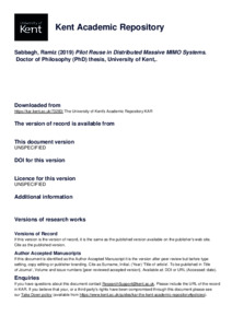 Sabbagh, Ramiz (2019) Pilot Reuse in Distributed Massive MIMO Systems. Doctor of Philosophy (PhD) thesis, University of Kent,. (KAR id:73283)
