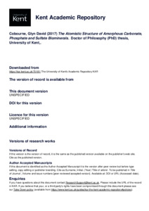 Cobourne, Glyn David (2017) The Atomistic Structure of Amorphous Carbonate, Phosphate and Sulfate Biominerals. Doctor of Philosophy (PhD) thesis, University of Kent,. (KAR id:75161)