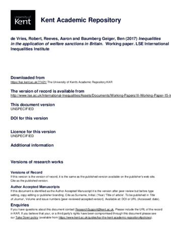 de Vries, Robert and Reeves, Aaron and Baumberg Geiger, Ben (2017) Inequalities in the application of welfare sanctions in Britain. Working paper. LSE International Inequalities Institute (KAR id:77421)