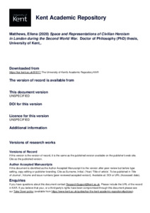 Matthews, Ellena (2020) Space and Representations of Civilian Heroism in London during the Second World War. Doctor of Philosophy (PhD) thesis, University of Kent,. (KAR id:81817)