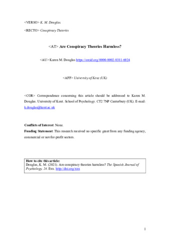 Douglas, Karen (2021) Are conspiracy theories harmless? Spanish Journal of Psychology, 24 . Article Number e13. ISSN 1138-7416. (doi:10.1017/SJP.2021.10) (KAR id:85602)