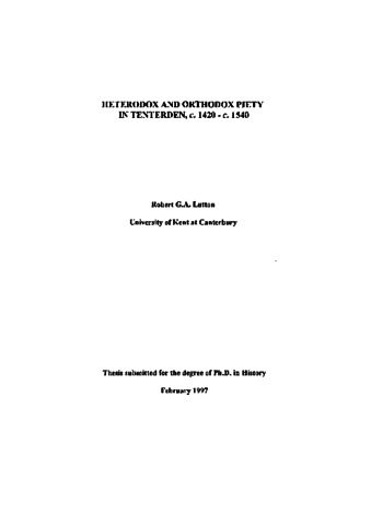 Lutton, Robert G.A. (1997) Heterodox and orthodox piety in Tenterden, c.1420 - c.1540. Doctor of Philosophy (PhD) thesis, University of Kent. (doi:10.22024/UniKent/01.02.85972) (KAR id:85972)