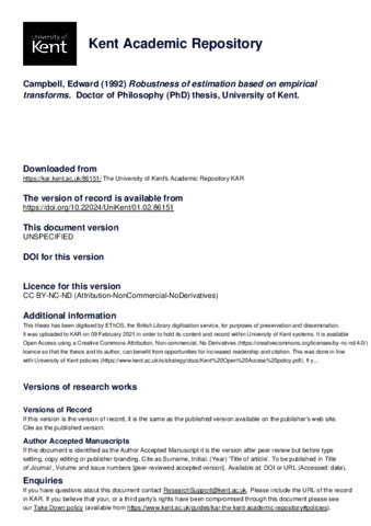 Campbell, Edward (1992) Robustness of estimation based on empirical transforms. Doctor of Philosophy (PhD) thesis, University of Kent. (doi:10.22024/UniKent/01.02.86151) (KAR id:86151)