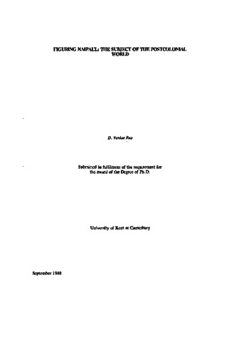 Rao, D. V (1988) Figuring Naipaul : The subject of the postcolonial world. Doctor of Philosophy (PhD) thesis, University of Kent. (doi:10.22024/UniKent/01.02.86445) (KAR id:86445)
