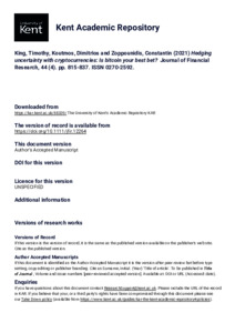 King, Timothy, Koutmos, Dimitrios, Zoppounidis, Constantin (2021) Hedging uncertainty with cryptocurrencies: Is bitcoin your best bet? Journal of Financial Research, 44 (4). pp. 815-837. ISSN 0270-2592. E-ISSN 1475-6803. (doi:10.1111/jfir.12264) (KAR id:88339)