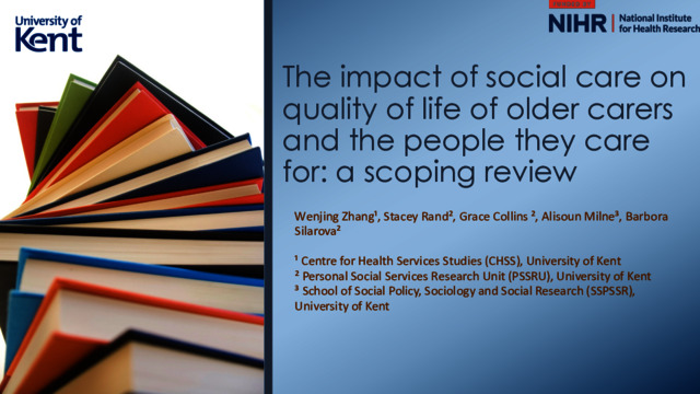 Zhang, Wenjing, Rand, Stacey, Milne, Alisoun, Silarova, Barbora, Collins, Grace (2021) The impact of social care on quality of life of older carers and the people they care for: a scoping review. In: British Society of Gerontology 50th Annual Conference, 7-9 Jul 2021, Online. (KAR id:91060)