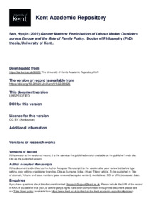 Seo, Hyojin (2022) Gender Matters: Feminisation of Labour Market Outsiders across Europe and the Role of Family Policy. Doctor of Philosophy (PhD) thesis, University of Kent,. (doi:10.22024/UniKent/01.02.93626) (KAR id:93626)