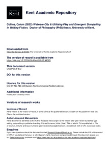 Collins, Calum (2022) Wetware City & Utilising Play and Emergent Storytelling in Writing Fiction. Doctor of Philosophy (PhD) thesis, University of Kent,. (doi:10.22024/UniKent/01.02.94083) (KAR id:94083)