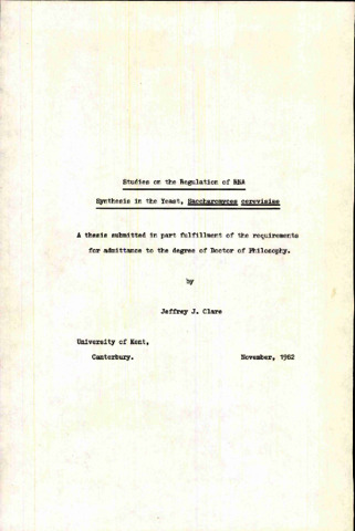 Clare, Jeffrey J (1982) Studies on the regulation of RNA synthesis in the yeast, Saccharomyces cerevisiae. Doctor of Philosophy (PhD) thesis, University of Kent. (doi:10.22024/UniKent/01.02.94271) (KAR id:94271)