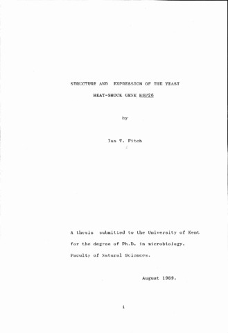 Fitch, Ian T (1989) Structure and expression of the yeast heat-shock gene HSP26. Doctor of Philosophy (PhD) thesis, University of Kent. (doi:10.22024/UniKent/01.02.94349) (KAR id:94349)