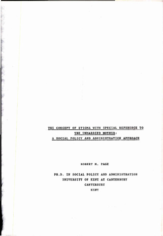 Page, Robert M. (1984) The concept of stigma with special reference to the unmarried mother : a social policy and administration approach. Doctor of Philosophy (PhD) thesis, University of Kent. (doi:10.22024/UniKent/01.02.94569) (KAR id:94569)