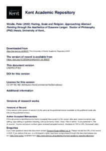 Windle, Peter (2022) Feeling, Scale and Religion: Approaching Abstract Painting through the Aesthetics of Susanne Langer. Doctor of Philosophy (PhD) thesis, University of Kent,. (doi:10.22024/UniKent/01.02.95637) (KAR id:95637)