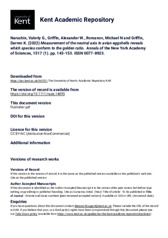 Narushin, Valeriy G., Griffin, Alexander W., Romanov, Michael N, Griffin, Darren K. (2022) Measurement of the neutral axis in avian eggshells reveals which species conform to the golden ratio. Annals of the New York Academy of Sciences, 1517 (1). pp. 143-153. ISSN 0077-8923. (doi:10.1111/nyas.14895) (KAR id:96707)