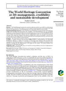 Labadi, Sophia (2022) The World Heritage Convention at 50: management, credibility and sustainable development. Journal of Cultural Heritage Management and Sustainable Development, . ISSN 2044-1266. (doi:10.1108/JCHMSD-05-2022-0077) (KAR id:96709)