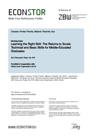 Piracha, Matloob and Cnossen, Femke and Tchuente, Guy (2021) Learning the right skill: the returns to social, technical, and basic skills for middle-educated graduates. Technical report. GLO (Submitted) (KAR id:98819)