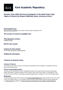 Streather, Bree (2022) Structural Investigation of the DedA Protein YqjA. Master of Science by Research (MScRes) thesis, University of Kent,. (doi:10.22024/UniKent/01.02.99033) (KAR id:99033)