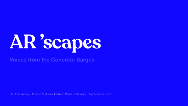 McLean, Kate, Perks, Richard, Ainley, Rosa (2022) AR 'scapes: Voices from the Concrete Barges presentation. In: Eastern Arc Conference 2022: The Collaborative Coast, 22 September 2022, Colchester, UK. (Unpublished) (KAR id:99226)
